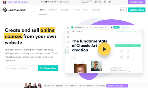 LearnWorlds는 필요한 일련의 과정 생성 서비스를 제공하고 교차 판매, 클릭 유입경로 및 특별 제안을 포함하는 마케팅 프로그램을 설정합니다.