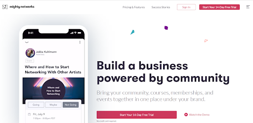 Mighty Networks는 다른 기능을 희생하면서 커뮤니티 기능을 강조합니다.