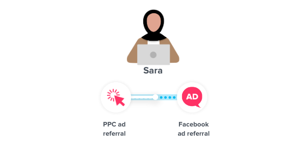 이 예를 계속하기 위해 Sara는 며칠 후 Facebook 광고 중 하나를 통해 사이트를 다시 방문합니다.