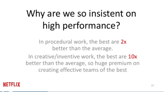 Istnieją dwa rodzaje ludzi – pracownicy proceduralni i ludzie kreatywni/wynalazcy. W rzeczywistości dyrektor generalny Netflix, słynna talia kulturalna Reeda Hastingsa (obecnie z 20 milionami wyświetleń) wyjaśnił, że istnieje znacznie niższy pułap dla pracy proceduralnej w porównaniu z pracą twórczą/wynalazczą, gdzie im więcej inwestujesz w talenty twórcze, większe nagrody, które zbierasz.