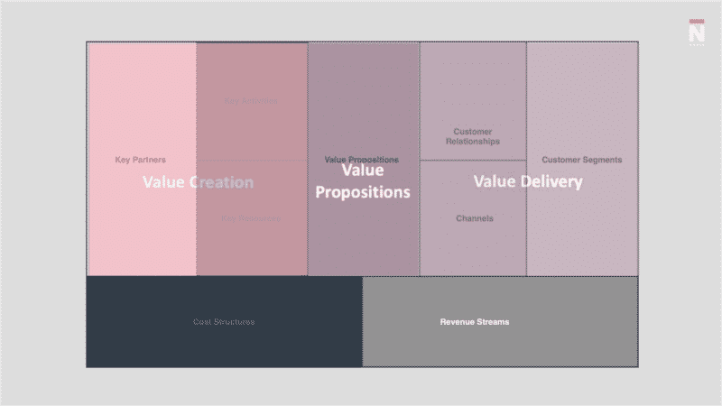 Gdy przybliżamy płótno modelu biznesowego, zaczynamy widzieć, gdzie spada wpływ brandingu. W rzeczywistości kanwa wartości zawiera „propozycję wartości” w martwym punkcie kanwy modelu biznesowego.