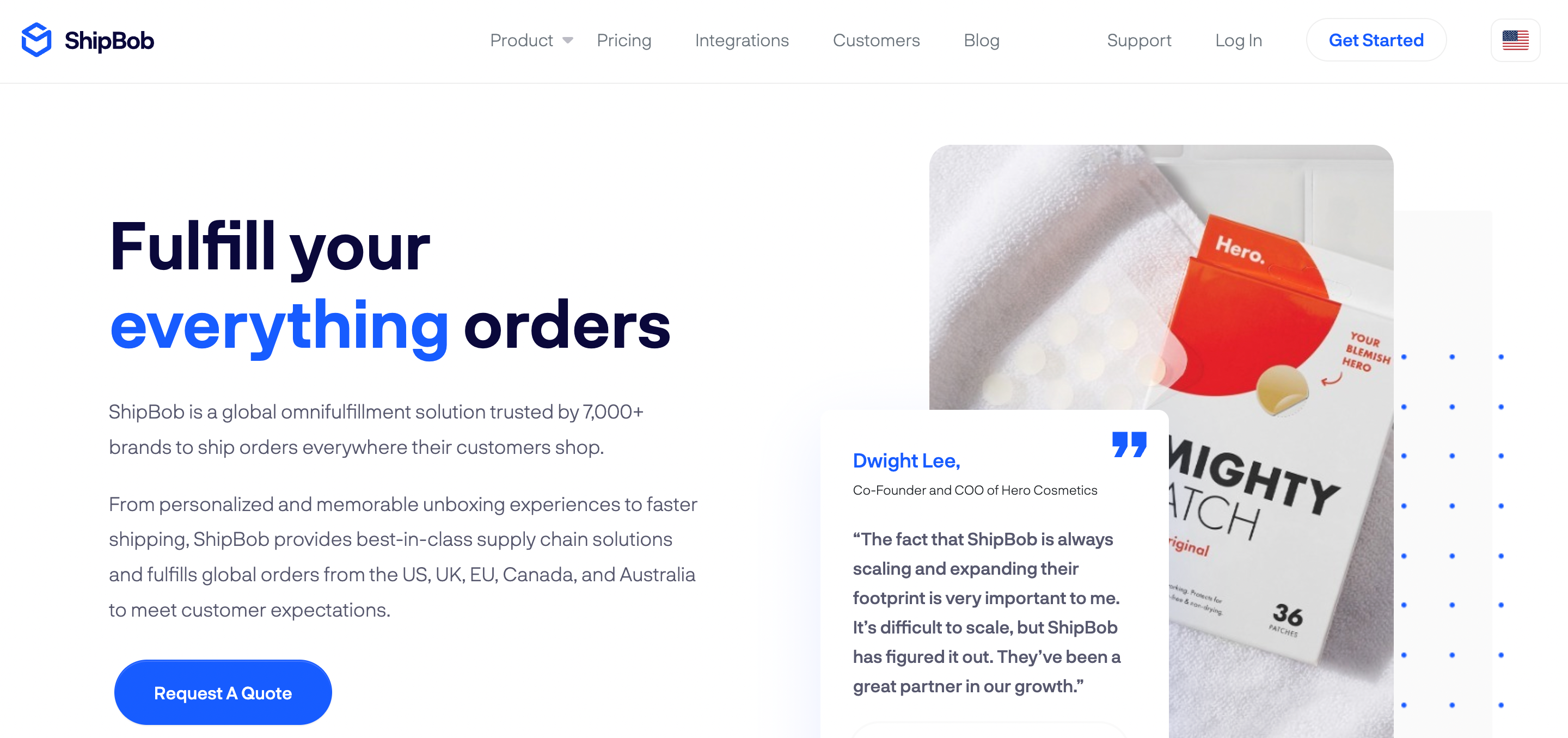 ShipBob oferuje kompletne rozwiązanie dla wszystkich Twoich potrzeb. Oferują różnorodne usługi, takie jak wysyłka, magazynowanie, zarządzanie zapasami i obsługa klienta. Mają również unikalny sposób oferowania bezpłatnego przechowywania wszystkich produktów w Twoim magazynie. ShipBob to idealny wybór dla każdej firmy eCommerce, która chce rozwijać swoją działalność bez kłopotów z zarządzaniem własnym magazynem lub centrum dystrybucji.