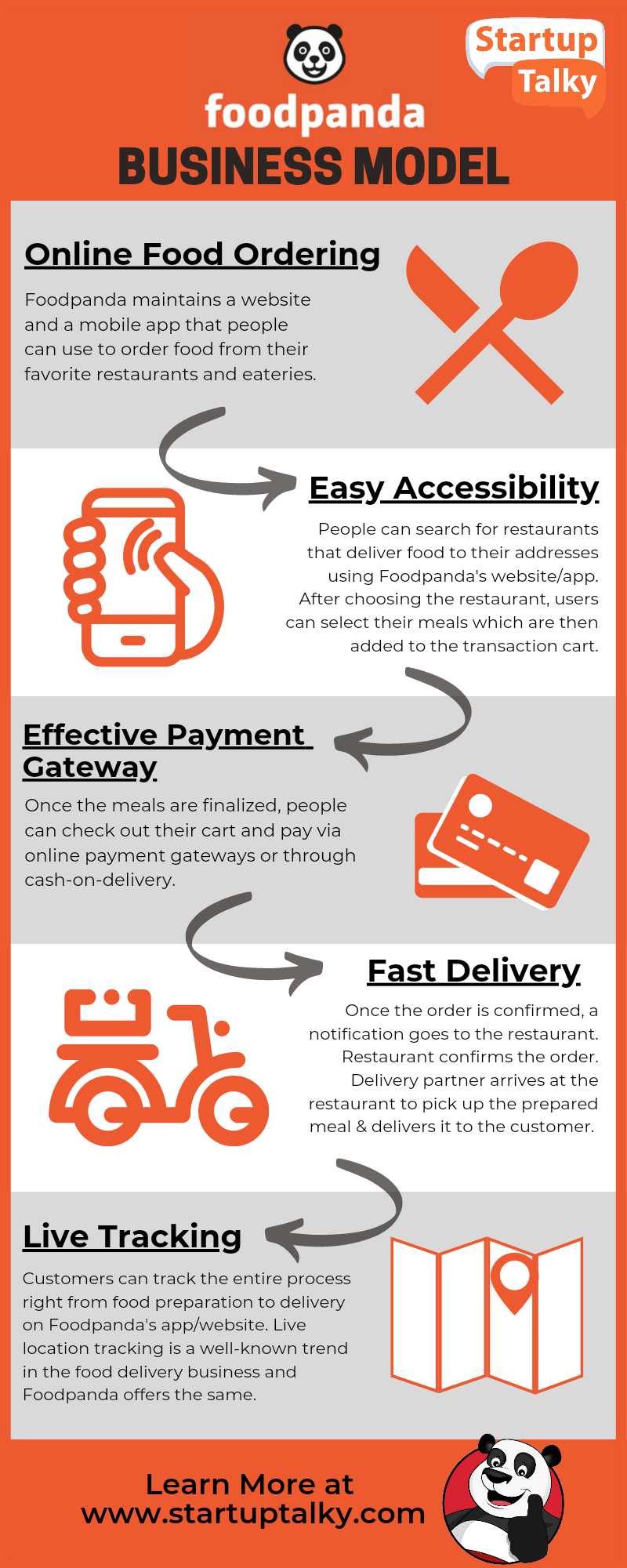 Foodpanda robi ogromne postępy. Zespół Foodpanda w pełni wykorzystuje platformy mediów społecznościowych, aby angażować klientów. Osiągnęła znaczny wzrost dzięki marketingowi e-mailowemu, marketingowi społecznościowemu i marketingowi mobilnemu. Jeśli Foodpanda będzie nadal wprowadzać innowacje i improwizować, wkrótce zdominuje segment zamawiania i dostawy jedzenia online.