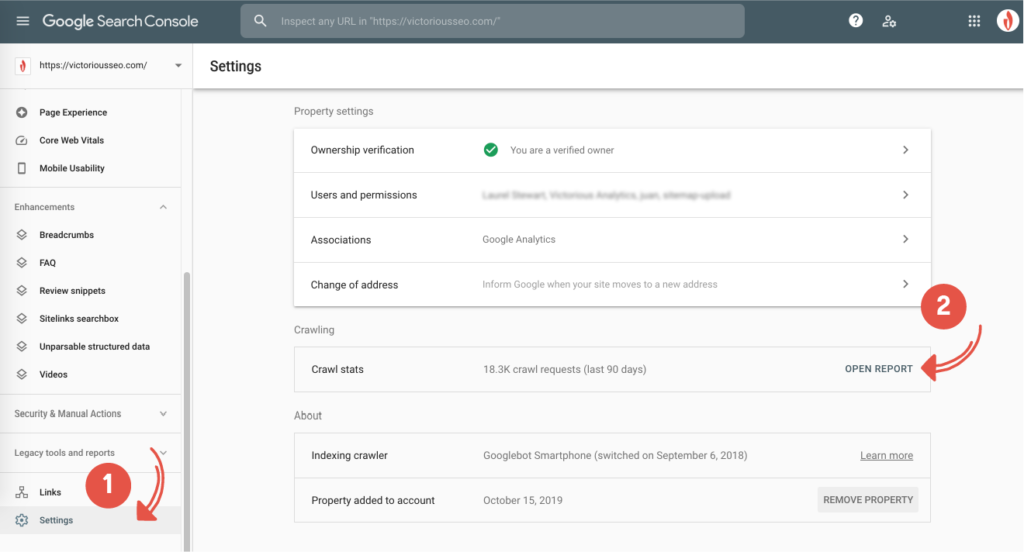 - Zaloguj się do Search Console i znajdź stronę Ustawienia w nawigacji po lewej stronie.