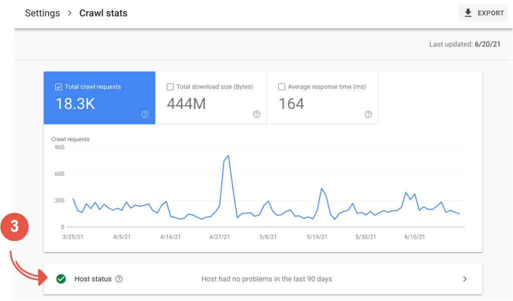 - Kliknij Stan hosta, aby wyświetlić wszelkie istotne błędy indeksowania z czerwoną ikoną stanu dostępności.