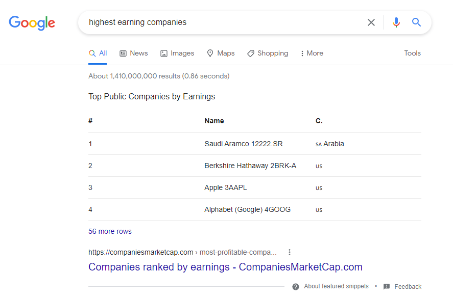 Jeśli chcesz uszeregować fragment z polecanym fragmentem, ważne jest, aby zobaczyć, jaki typ fragmentu z wyróżnieniem ma już pozycję w rankingu dla tego wyszukiwanego hasła. Jeśli jest to lista, pamiętaj, aby dołączyć ją do treści. Jeśli jest to tabela, dołącz tabelę i tak dalej.