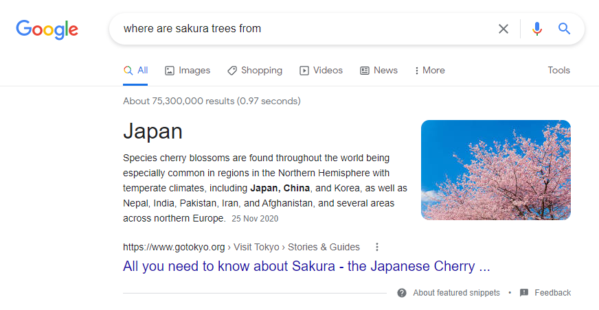 - Sprawdź typ polecanego fragmentu pojawiający się w wyszukiwaniu