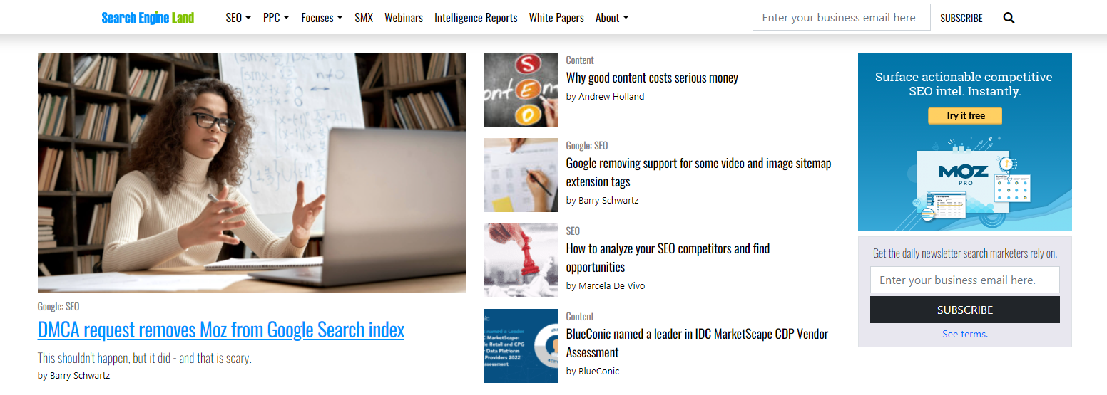 Se você quiser entender por que sua classificação caiu ou aproveitar ao máximo seus gastos com anúncios do Google, o Search Engine Land é o blog para você.