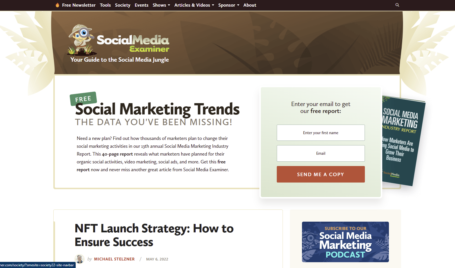 Social Media Examiner é um site dedicado a todas as mídias sociais. Eles compartilham ideias de conteúdo, estratégias de mídia social, tendências atuais e insights sobre indústrias que estão prosperando nas mídias sociais.