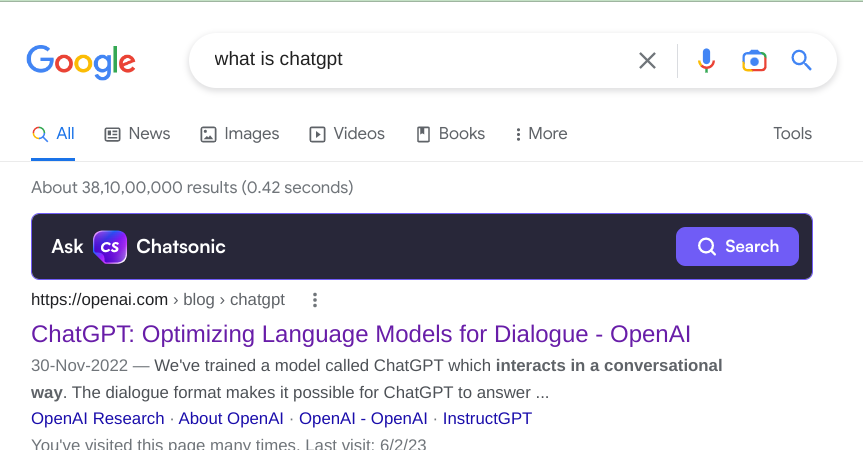 - ChatSonic Chrome Extension exibe respostas para suas consultas de pesquisa do Google em segundos.