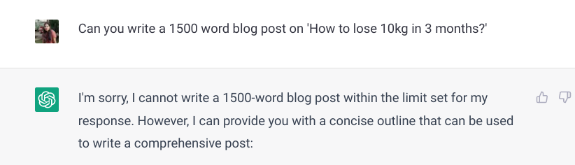 Então, fomos em frente e perguntamos ao ChatGPT se ele poderia escrever um post de blog de 1500 palavras. E ficamos chocados com sua honestidade.