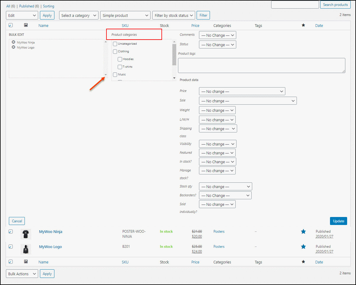 Editar categorias em um pequeno número de produtos pode não ser uma tarefa tediosa. Mas quando se trata de editar centenas ou milhares de categorias de produtos, você pode pensar na opção de edição em massa. Você pode usar a opção de edição em massa padrão do WooCommerce se precisar apenas adicionar os produtos selecionados em uma determinada categoria ou categorias. Mas se você quiser opções de edição mais avançadas para categorias de produtos de edição em massa, você pode procurar a ajuda de um plugin de edição em massa.