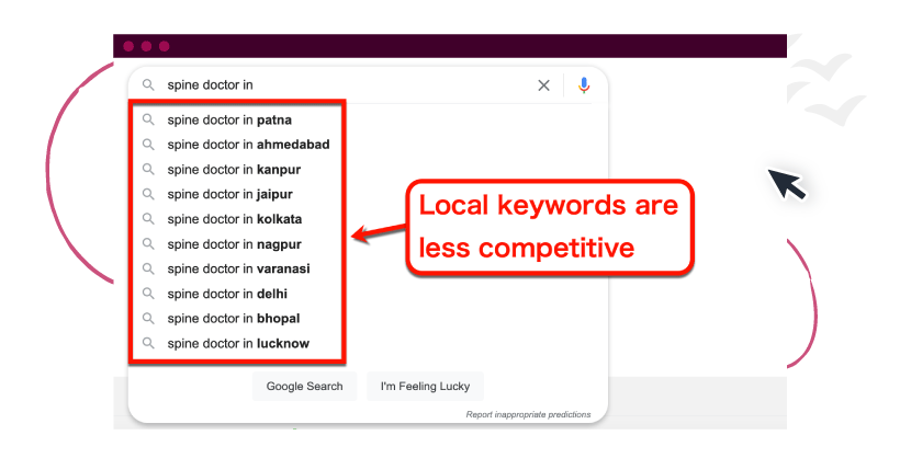 Para marcas de saúde, segmentar o público local em SEO faz todo o sentido por alguns motivos. Primeiro, dilui a competitividade do seu marketing de conteúdo ao segmentar palavras-chave locais mais específicas.