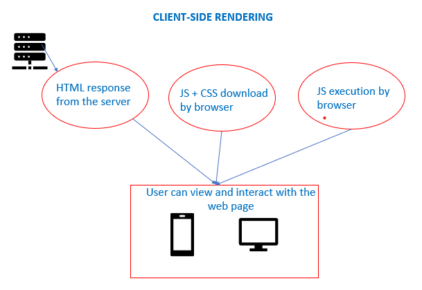 No entanto, na renderização do lado do cliente , o JavaScript é renderizado pelo navegador usando DOM.