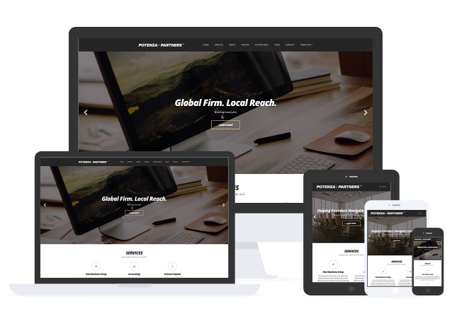 Se sua necessidade é um tema poderoso para sua empresa representar sua marca, Potenza é um dos temas corporativos mais poderosos disponíveis no WordPress. Ele apresenta uma tonelada de opções flexíveis. Há um construtor de arrastar e soltar facilmente personalizável para a página inicial e um belo controle deslizante para a página inicial, onde você pode exibir as páginas mais relevantes do site.