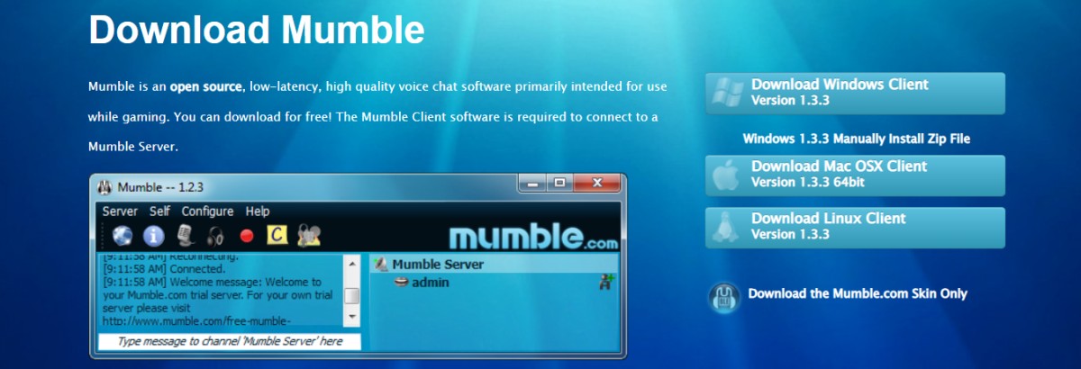 O Mumble é um software de bate-papo por voz de alta qualidade, código aberto e baixa latência usado durante o jogo para se comunicar com os jogadores. Ele suporta os sistemas operacionais Linux, Mac e Windows.