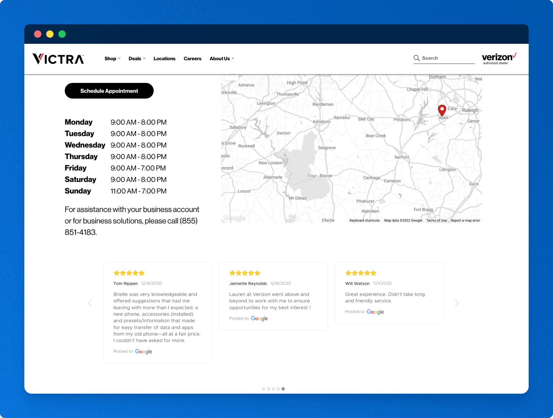 Na ReviewTrackers, temos uma seção inteira dedicada a histórias de sucesso de clientes , onde compartilhamos depoimentos e estudos de caso. Ter uma seção como esta em seu site, onde é visível na navegação principal do site, é uma maneira poderosa de fornecer provas sociais adicionais para os visitantes.
