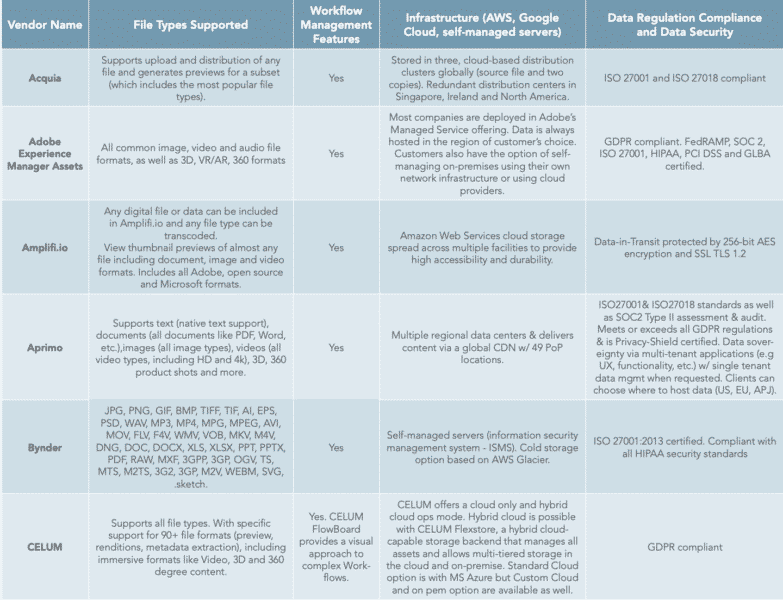 Explore as soluções DAM de fornecedores como Acquia, Widen, Cloudinary, MediaValet e muito mais no MarTech Intelligence Report completo em plataformas de gerenciamento de ativos digitais .