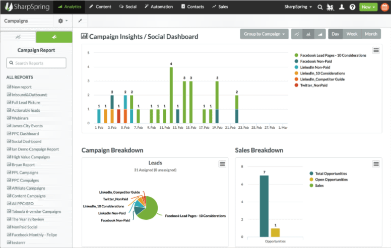 Dacă sunteți în căutarea unei platforme cu analize de top și abilitatea de a genera rapoarte care să demonstreze în mod clar adevărata valoare a marketingului pe rețelele sociale, nu căutați mai departe decât SharpSpring Social. Îți vei uimi directorul financiar.