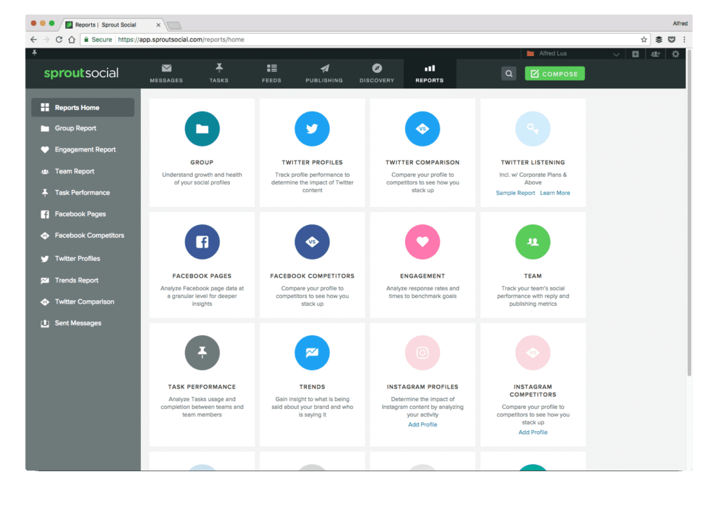 Comparabil cu Hootsuite, Sprout Social oferă mai multe resurse într-o singură platformă, inclusiv programare post, monitorizare și raportare.