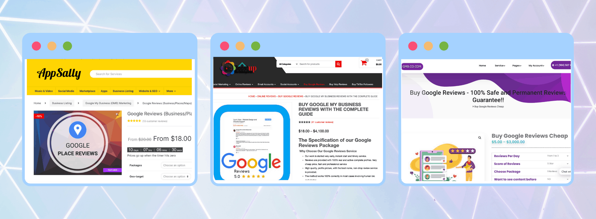 Dacă tastați „cumpărați recenzii Google” pe motoarele de căutare, veți vedea că furnizorii de servicii din stânga și din dreapta oferă „servicii de evaluare de 5 stele”, promițând „lucrare de calitate” cu „profiluri (Google) complet completate și fotografii realiste atașate conturi."