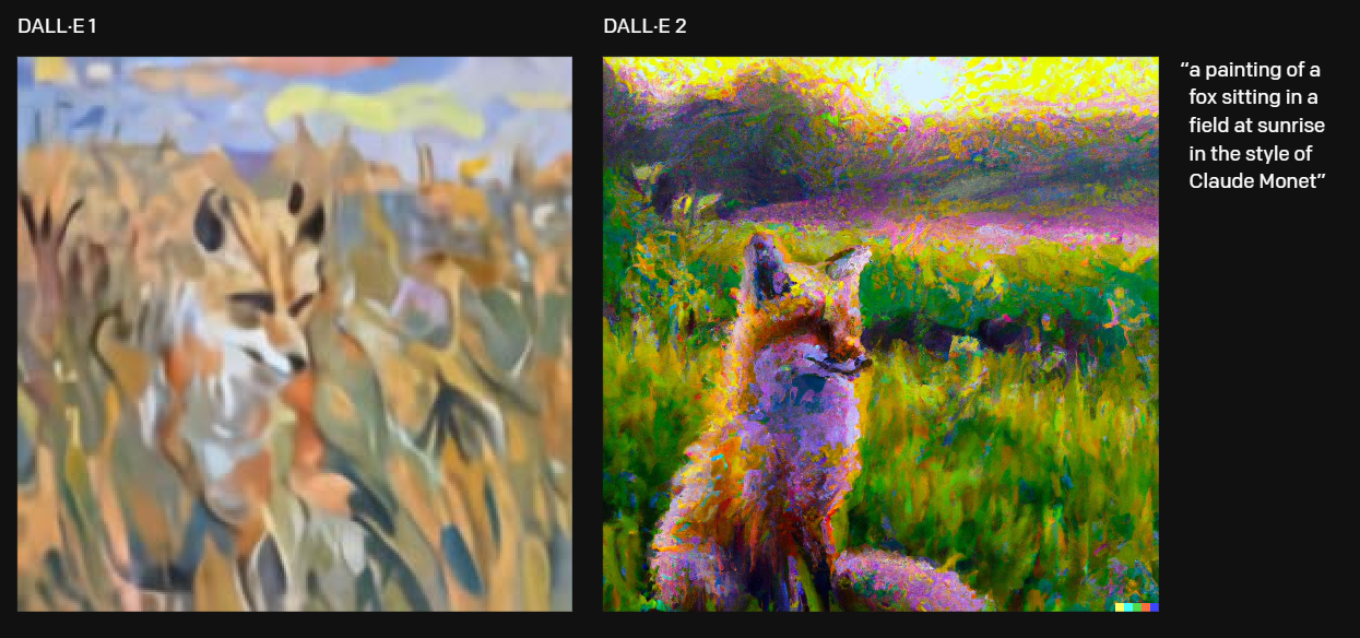 După cum am menționat anterior, Dall-E 2 este modelul mai nou și face mai mult decât precedentul. Calitatea este cu un pas mai mare și creează imagini și artă realiste într-o clipă. Acest software poate combina concepte, stiluri și atribute pentru cele mai bune rezultate finale.