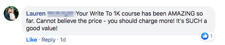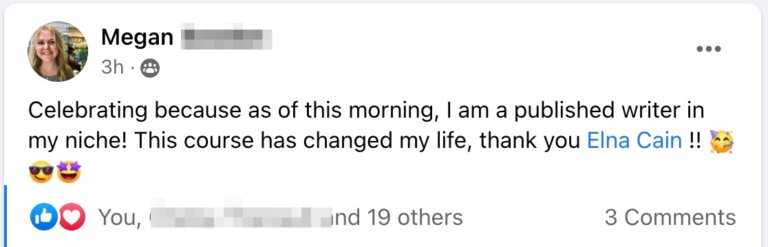 Și știu că funcționează, deoarece discuția din grupul meu de Facebook este mai puțin despre nișa în care să intru și mai mult despre atragerea clienților, strategiile de marketing sau sfaturi de scriere.