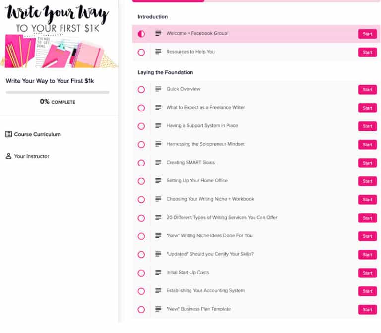 - Găsirea clienților de scris – adaug continuu lecții noi despre găsirea clienților de scris. Deși cea mai mare parte a acestui curs este să vă ajute să ATRAGI clienții către tine, îmi dau seama că, pentru noii scriitori independenți, trebuie să te grăbești și să te pui acolo. Fac acest lucru ușor în acest modul!