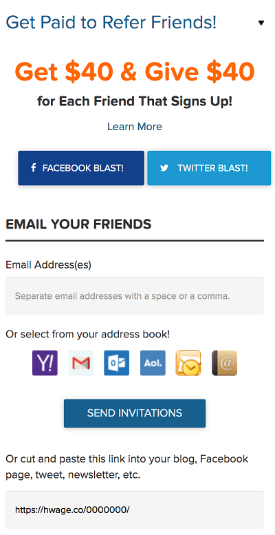 Puteți crește suma totală a premiului folosind programul de recomandare HealthyWage. Acest program adaugă un plus de 40 USD la premiul tău pentru fiecare prieten care face un pariu prin linkul tău.