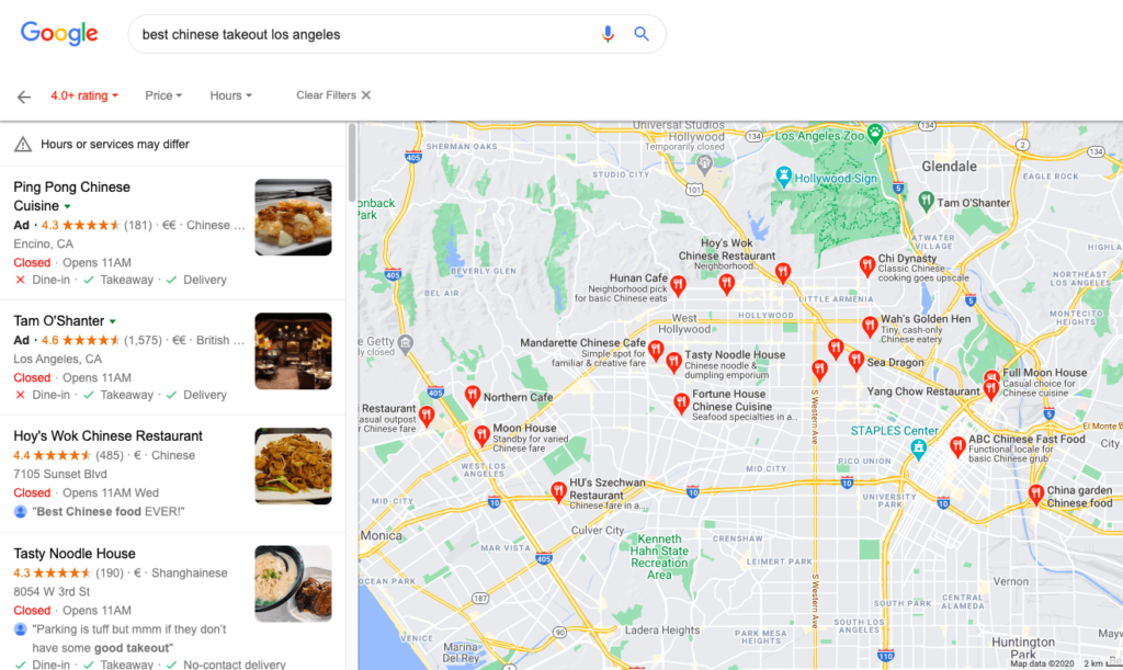 Cu Google Ads, puteți viza potențiali clienți care locuiesc într-o anumită zonă geografică. Iată un exemplu de anunț de căutare locală în acțiune într-o căutare pe Hărți.