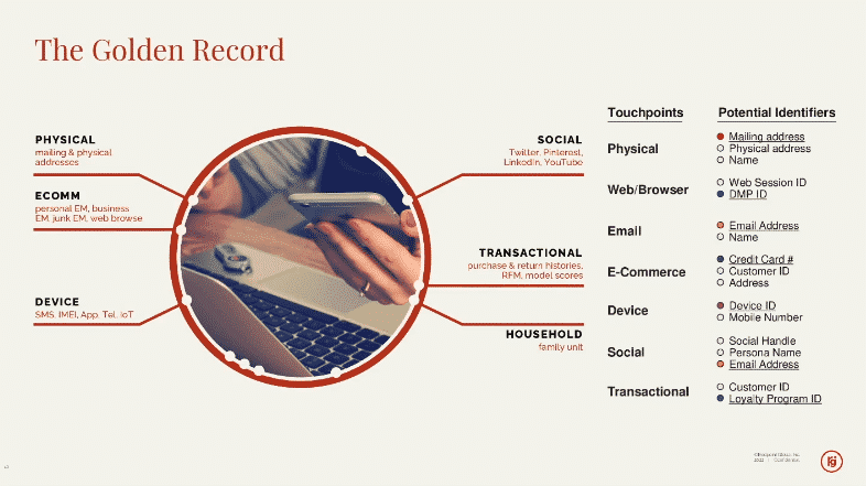 Tomes sugerează marketerii să-și construiască profilurile de aur folosind aceste informații culese de pe platformele de rezoluție a identității. Și odată colectat, îl pot folosi pentru a construi medii mai bune pentru clienții lor.