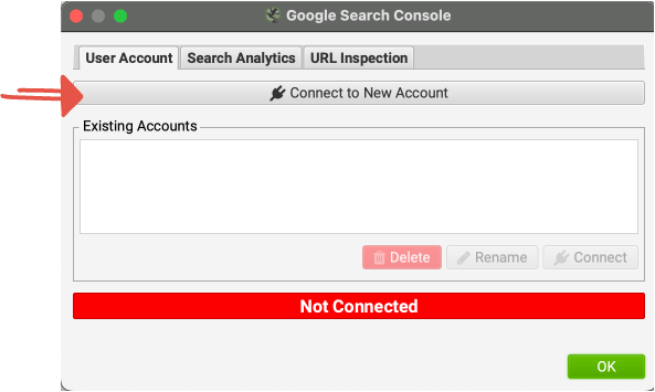 Faceți clic pe „Conectați-vă la un cont nou” dacă nu v-ați conectat anterior contul Google Analytics.