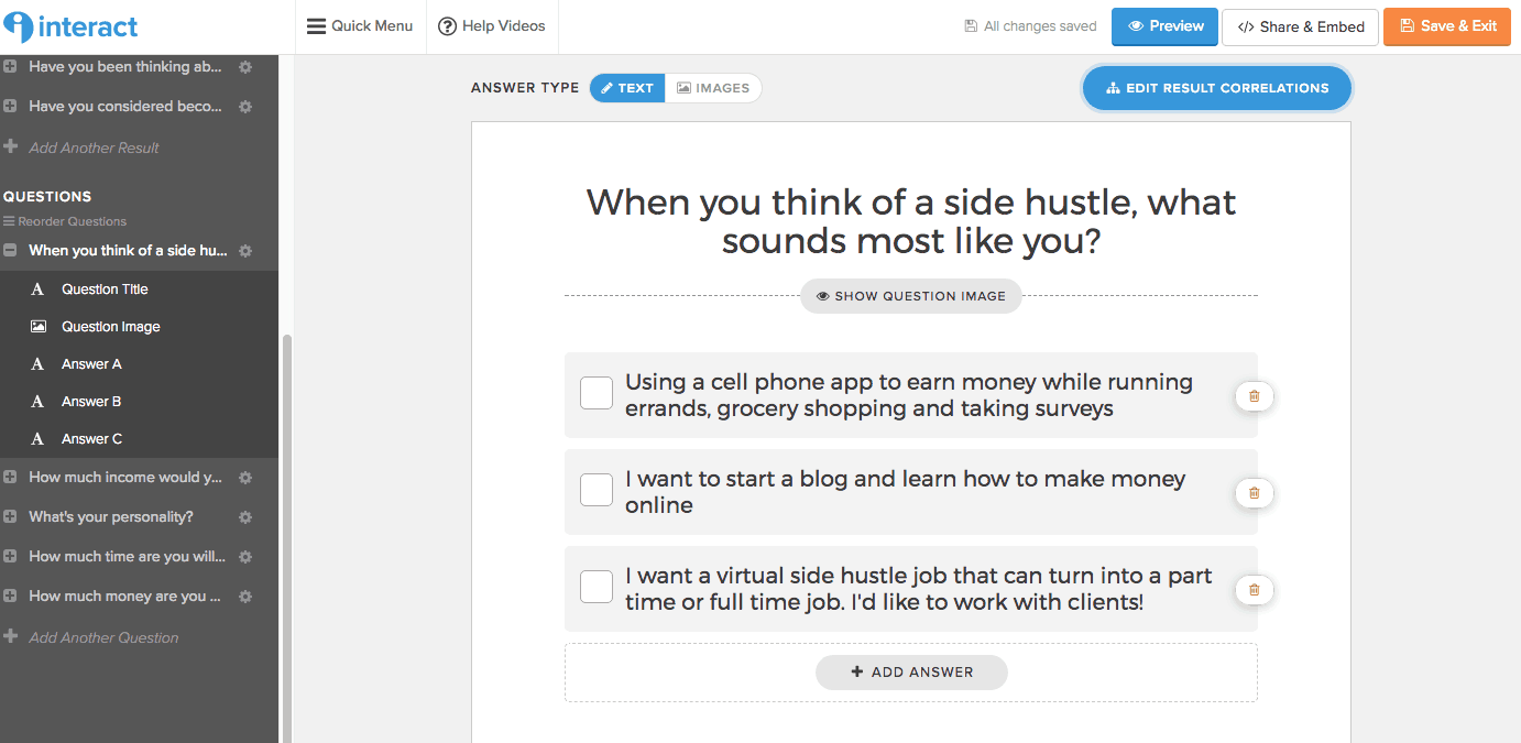 Am făcut chestionarul de mai sus în aproximativ 15 minute de la început până la sfârșit folosind Interact. Interact permite utilizatorilor să creeze chestionare, sondaje, cadouri și multe altele. Sunt mereu în căutarea unor modalități noi și distractive de a interacționa cu cititorii mei, iar un test pare o modalitate excelentă de a intra în legătură cu toată lumea, precum și de a oferi o experiență mai bună pentru utilizator.