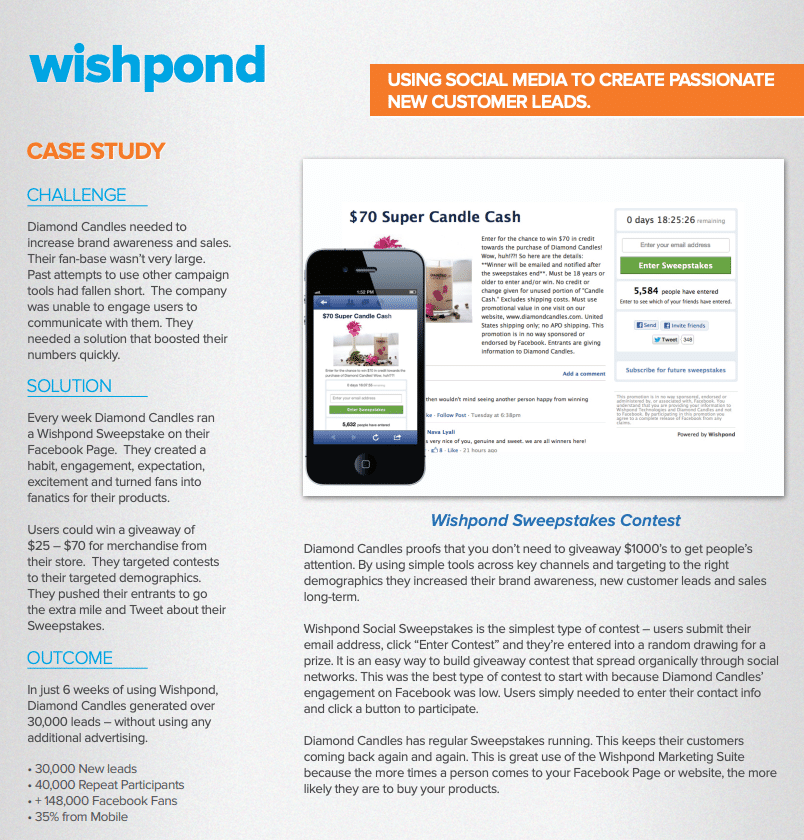 В зависимости от компании они могут форматировать свои «истории успеха» в виде сообщений в блогах или в формате PDF. Маркетинговое агентство Wishpond делает и то, и другое на своей странице тематического исследования.