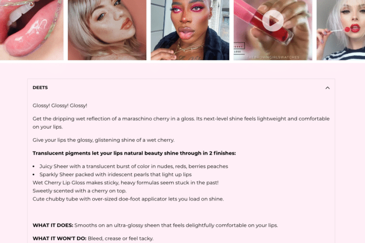 Lime Crime — это веганская линия косметики, не требующая жестокости, и у них есть сотни продуктов. Каждый продукт имеет краткое описание и более подробное описание.