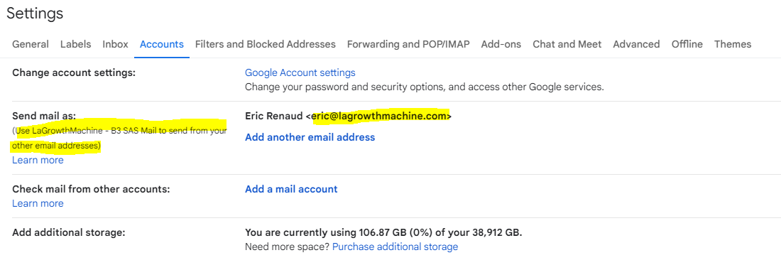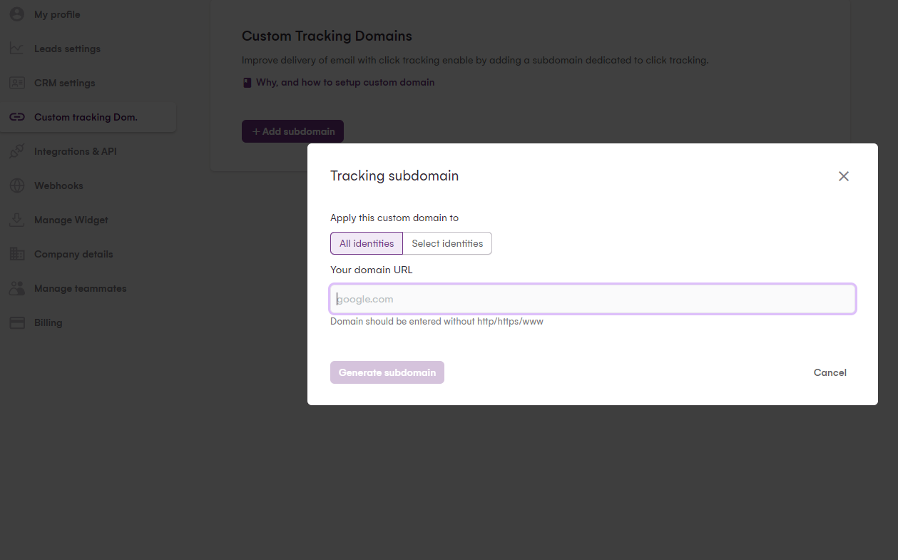 - Настройте свой собственный домен электронной почты на свою личность в LaGrowthMachine;