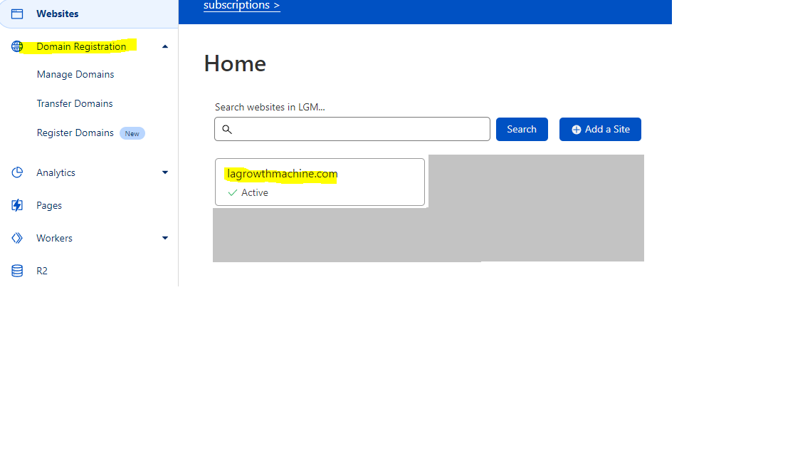 Например, если вы используете Kinsta, вам необходимо войти на свой веб-сайт Kinsta и получить доступ к разделу «Сайты». Затем щелкните доменное имя, которое вы хотите настроить (в данном случае: lagrowthmachine.com).