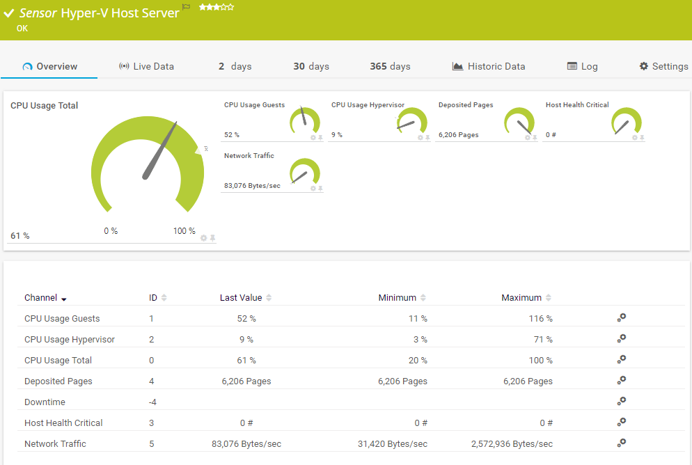 Программное обеспечение для мониторинга PRTG Hyper-V (часть PRTG Network Monitor) является одним из наиболее полных и детализированных программ в этой категории. Он разработан для удовлетворения потребностей тех, кто использует Hyper-V в своих серверных комнатах и центрах обработки данных.