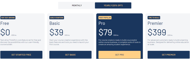 Имея это в виду, давайте подробнее рассмотрим различные тарифные планы Thinkific.