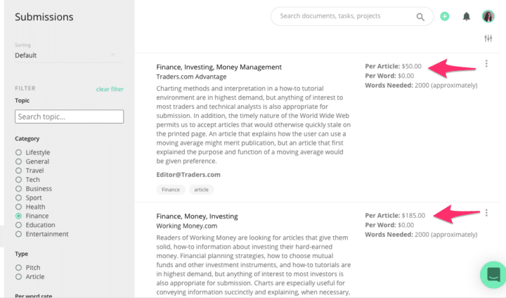 Помимо списков вакансий, есть раздел заявок, который позволяет вам участвовать в разовых концертах. Обычно это блоги или журналы, которые ищут одну статью. Существует смесь бесплатных представлений и платных.