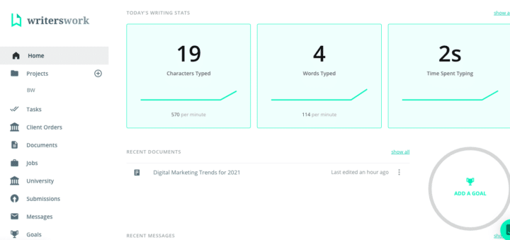 Мне очень нравится функция целей в Writers Work! Это отличный способ мотивировать как новых, так и опытных писателей-фрилансеров.