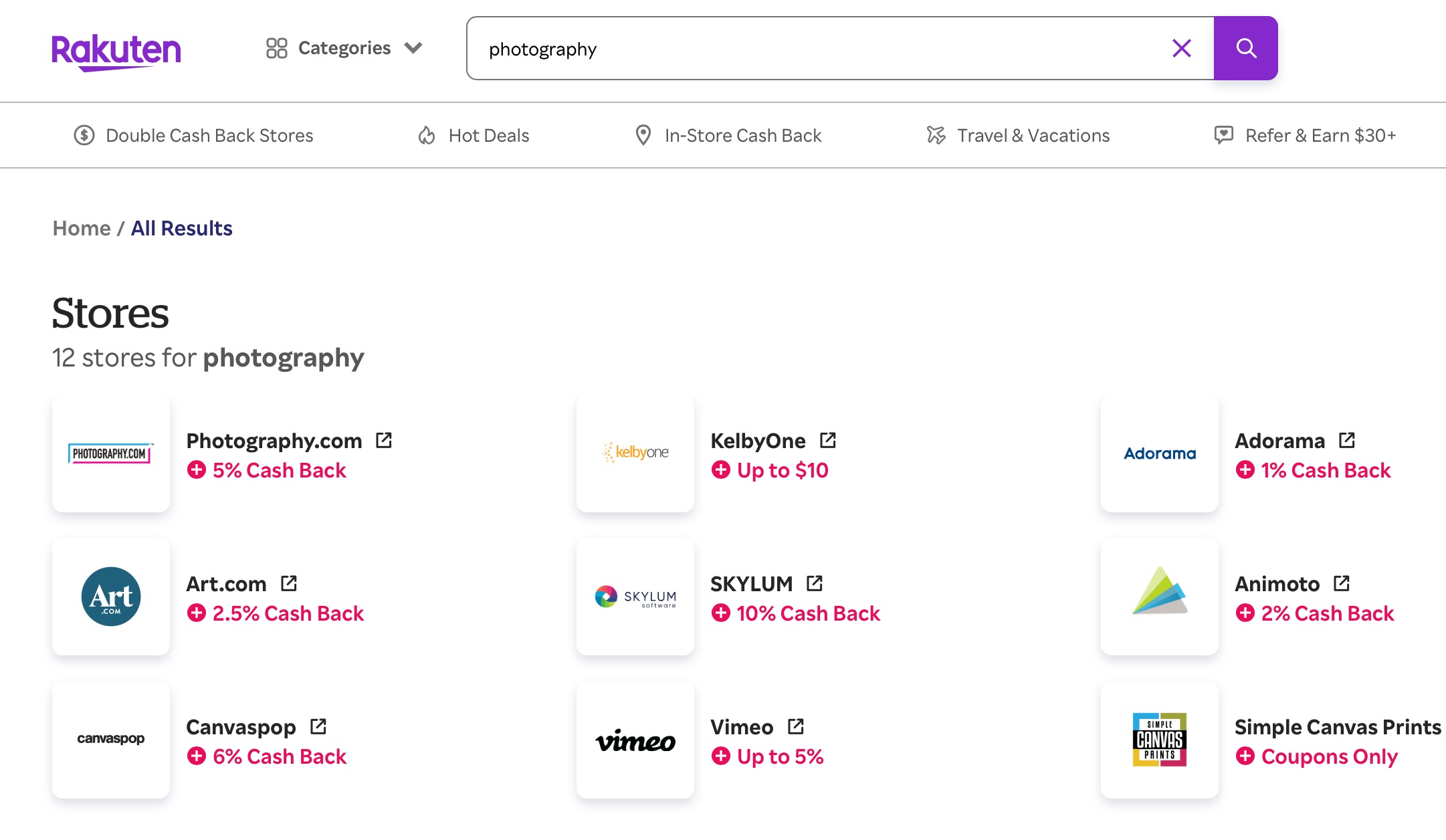 Rakuten เป็นอีกหนึ่งตลาดพันธมิตรที่คุณสามารถสำรวจเพื่อรับข้อเสนอพันธมิตรที่ยอดเยี่ยม นี่คือภาพรวมเล็กๆ น้อยๆ ของข้อเสนอการถ่ายภาพของพวกเขา คุณสามารถดูศักยภาพได้ที่นี่