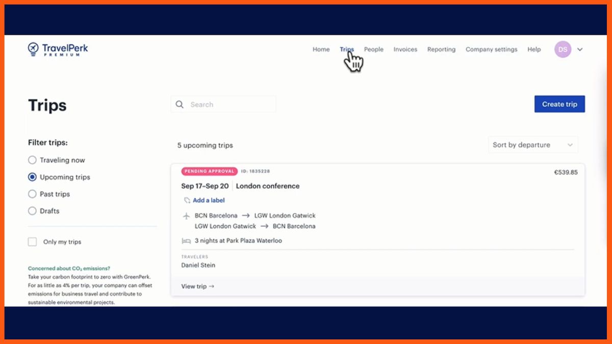TravelPerk เป็นโซลูชันซอฟต์แวร์แบบครบวงจรสำหรับติดตามค่าใช้จ่ายของการเดินทางเพื่อธุรกิจ พร้อมด้วยฟีเจอร์ที่จำเป็นทั้งหมด เช่น การจองโรงแรมและเที่ยวบิน การรายงาน การปฏิบัติตามข้อกำหนด และอื่นๆ อีกมากมาย บริษัทกว่า 5,000 แห่งทั่วโลกใช้ TravelPerk เพื่อจัดการการเดินทางเพื่อธุรกิจและเพิ่มประสิทธิภาพการทำงานด้วยการรายงานและการวิเคราะห์ที่มีประสิทธิภาพ