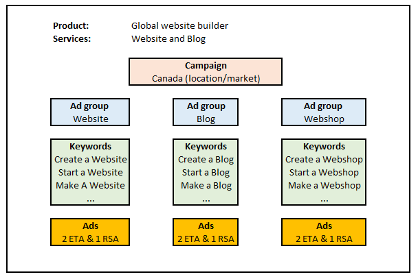 โครงสร้างนี้ขึ้นอยู่กับคุณว่าคุณต้องการแบ่งธีมให้ละเอียดเพียงใด อย่างไรก็ตาม คีย์เวิร์ดในกลุ่มโฆษณาต้องตรงกับธีม