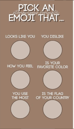 มีแม่แบบที่มีกิจกรรมหรืออารมณ์ที่แตกต่างกัน และคุณจะถูกขอให้แบ่งปันอีกครั้ง โดยทำเครื่องหมายว่าเกี่ยวข้องกับสิ่งที่คุณเกี่ยวข้องด้วย