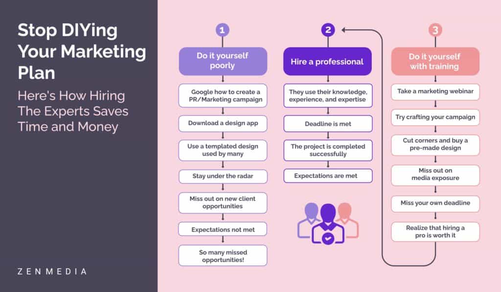 การสร้างกลยุทธ์ทางการตลาดต้องใช้เวลาและประสบการณ์ ตัวแทนฝ่ายประชาสัมพันธ์และการตลาดมักมีประสบการณ์และการศึกษามาหลายสิบปี นั่นเป็นสาเหตุที่พวกเขาเรียกเก็บเงินจากสิ่งที่พวกเขาทำ และทำไมพวกเขาจึงสามารถพลิกงานได้อย่างรวดเร็ว