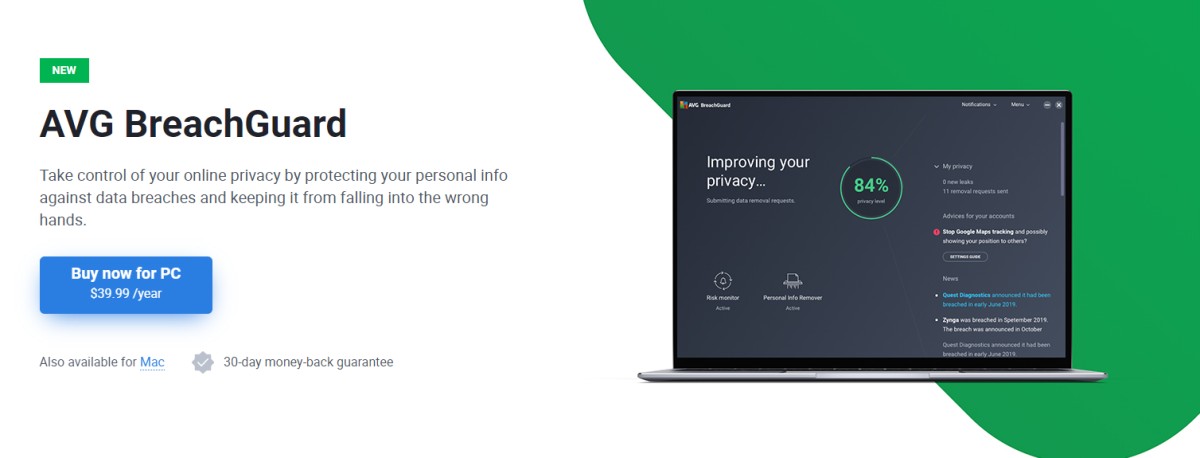 ซื้อ AVG BreachGuard สำหรับพีซีของคุณในราคา $39.99/ปี นอกจากนี้ยังมีให้สำหรับ Mac และคุณมีการรับประกันคืนเงินภายใน 30 วัน
