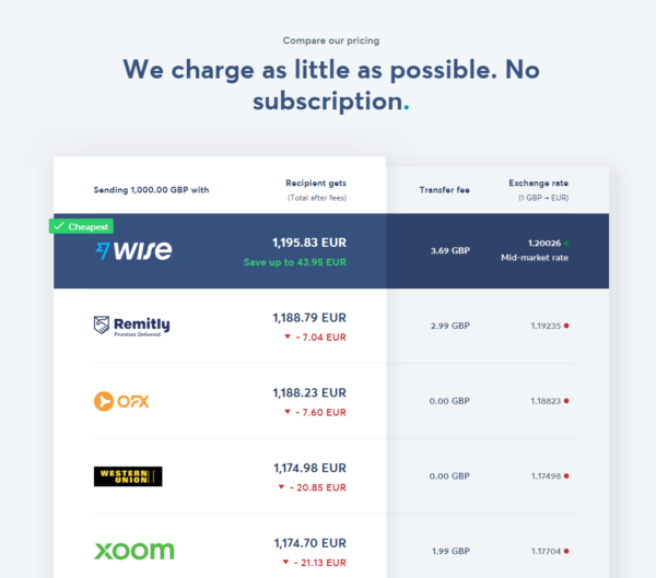 เนื่องจากผู้ก่อตั้งก่อตั้ง Wise เพื่อแก้ปัญหาที่พวกเขาตระหนักว่ากำลังส่งผลกระทบต่อผู้คนจำนวนมากที่อาจโกรธเคืองหากพวกเขารู้ความจริงเกี่ยวกับอัตราแลกเปลี่ยนและค่าใช้จ่ายในการโอนระหว่างประเทศ พวกเขาเล่นเพื่อดึงดูดลูกค้าให้ต่ำ- ทางเลือกต้นทุน