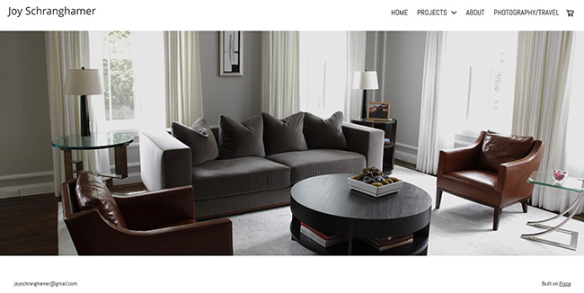 Joy Schranghamer bir iç mimardır ve web sitesi, kişisel tasarım felsefesinin bir yansımasıdır. Temiz, düzenli ve minimalist Joy'un web sitesi, çalışmalarınızı vurgulamak ve web sitenizin merkezinde tutmak için minimalizmin nasıl kullanılabileceğinin harika bir örneğidir.