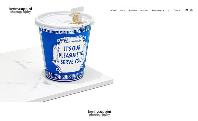 Benny Cuppini'nin web sitesi, görsel hiyerarşiyi güçlendirmek için minimalizmden büyük ölçüde yararlanıyor. Çalışmaları web sitesinde merkez sahnede yer alıyor ve görüntü karuseli, açılış sayfasını çok fazla resimle doldurmadan çalışmalarını endüstriler ve türler arasında gösterebilmesini sağlıyor. Nötr yazı tipi rengi ve canlı görüntü arka planı, web sitesini canlı ve haşhaş yapar.